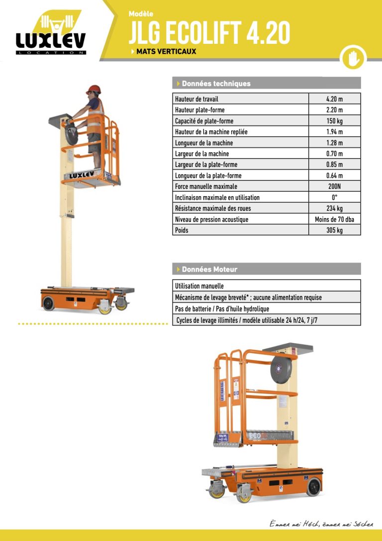 - Hauteur de travail : 4.20 m