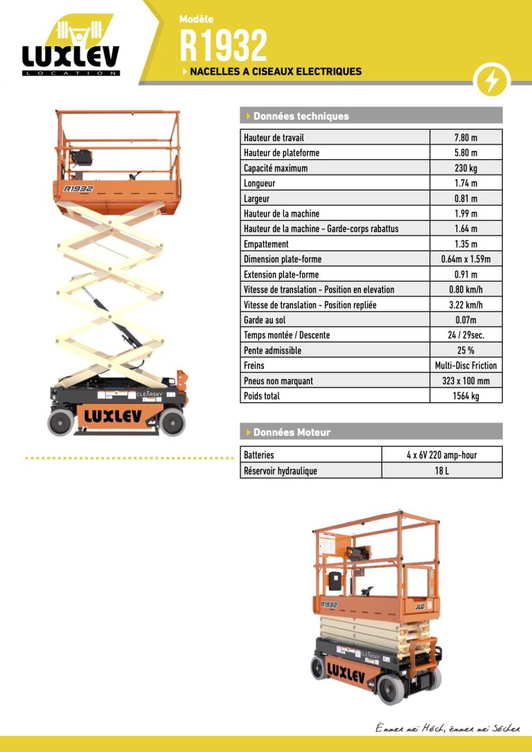- Hauteur de la machine – Garde-corps rabattus : 1.64 m