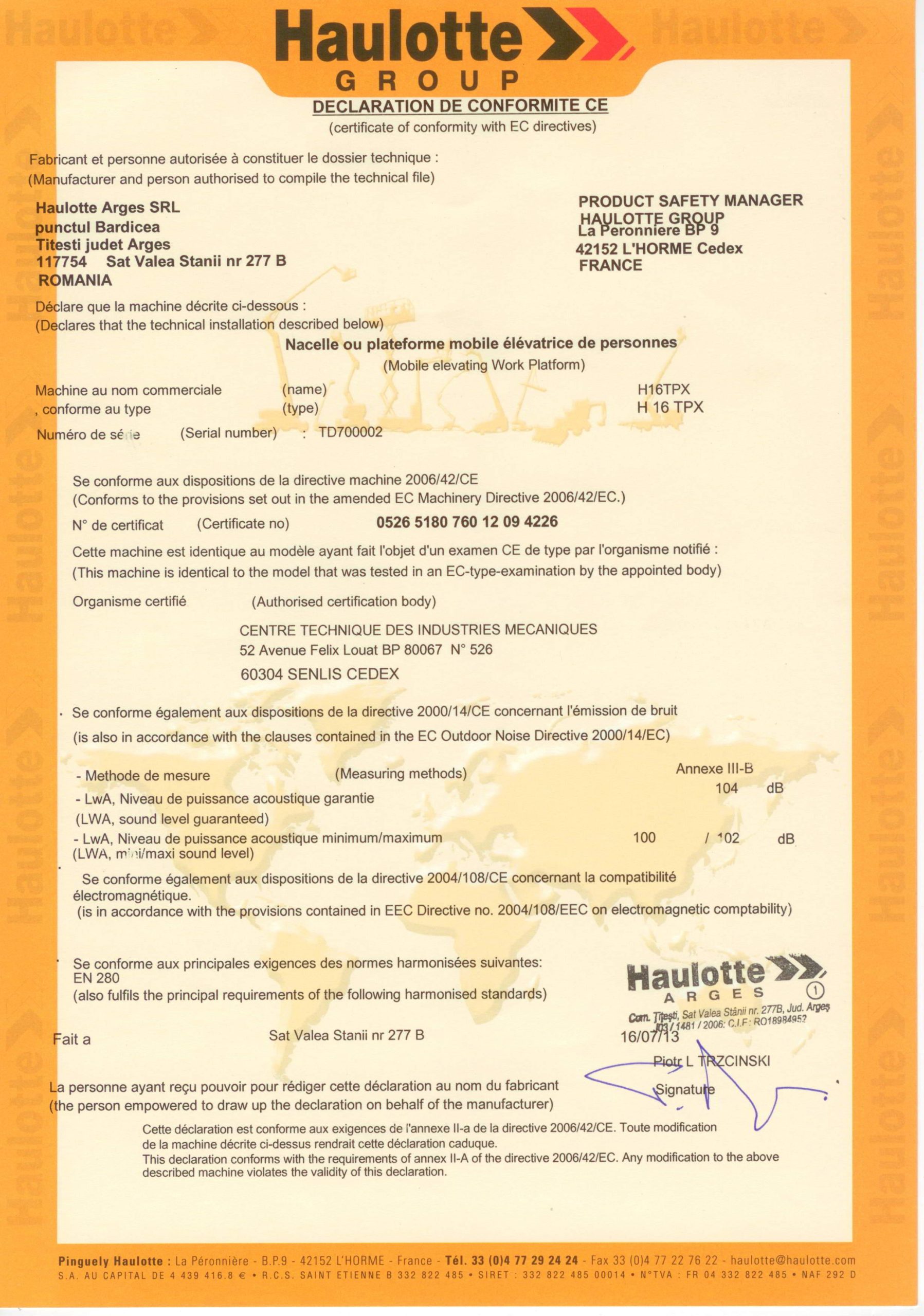 - Vitesse de translation : 0,7 – 5,5 km/h