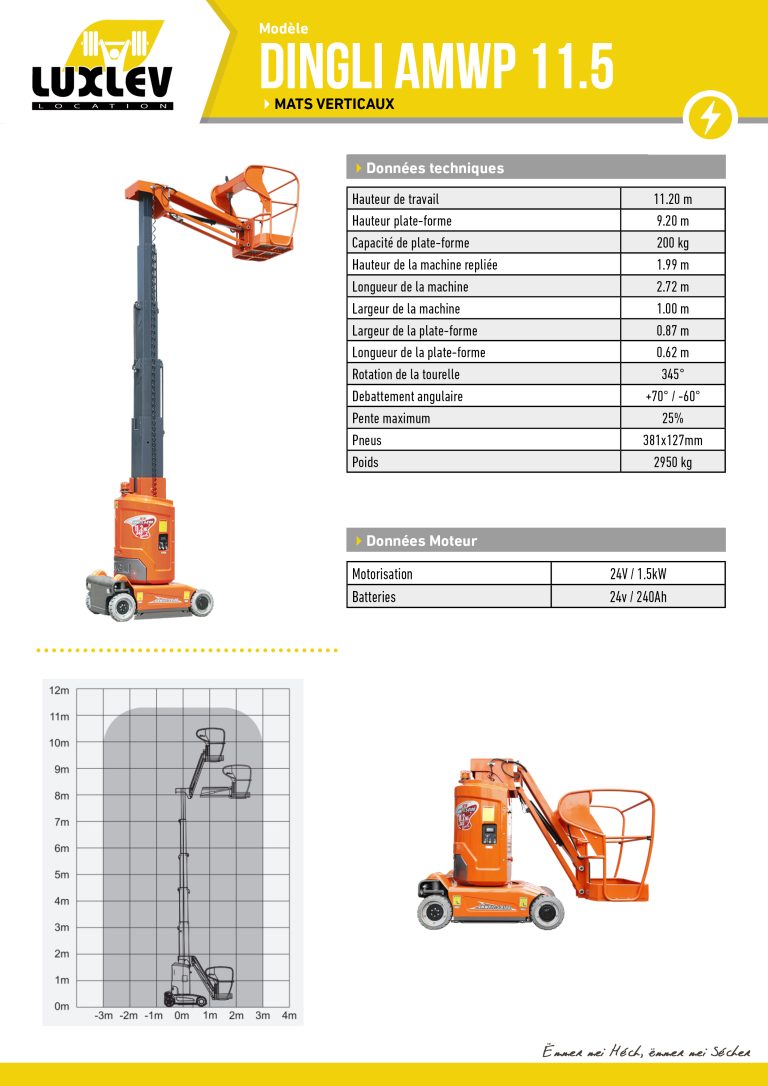 - Hauteur de travail : 11.20 m