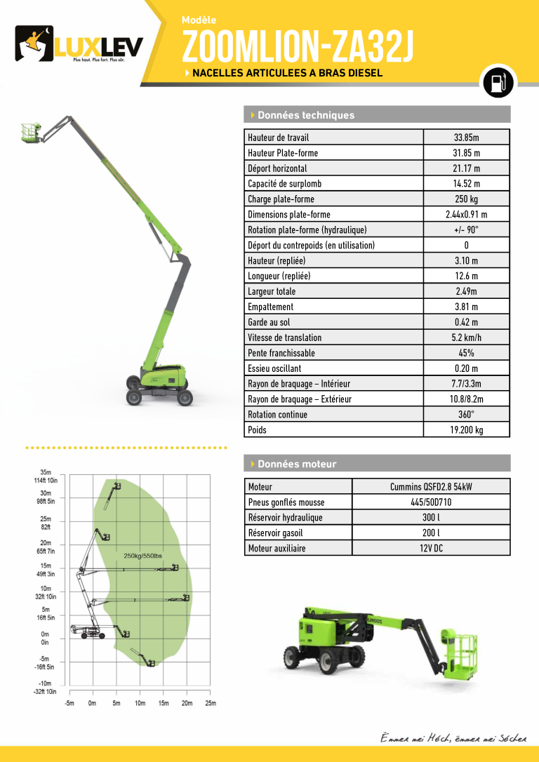 • Rotation plate-forme (hydraulique) : +/- 90°